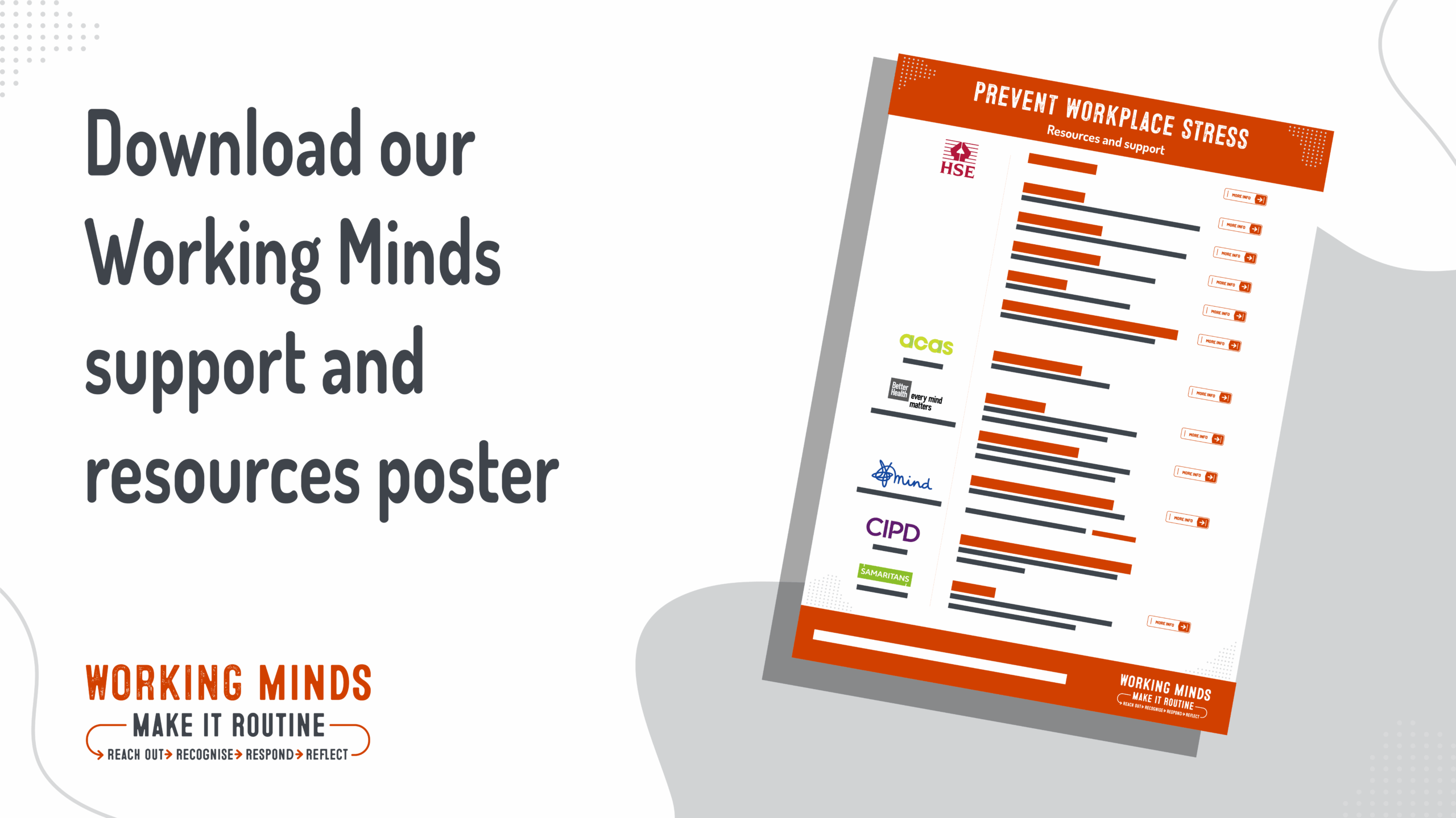 This resource hub contains digital resources to help you promote and support the Working Minds campaign. Download the assets to share on your channels and with your colleagues and networks.